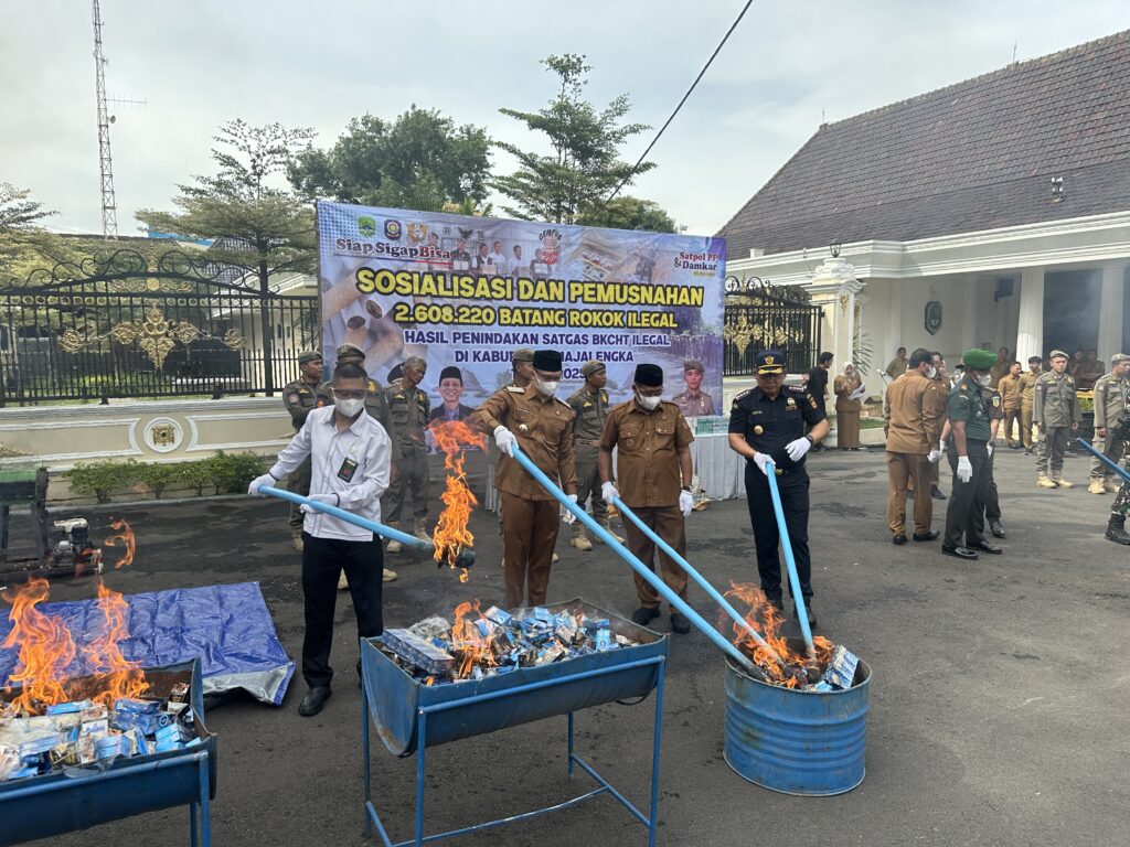 - REKOR PENINDAKAN ILLEGAL: Satgas BKCHT dan Pemda Majalengka Musnahkan 2,6 Juta Batang Rokok Ilegal.